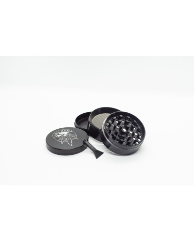 Młynek z metalu, 50 mm średnicy, kształt, który świetnie leży w dłoni, metalowe ząbki w kształcie rombów (świetnie mieli) i sitko do łapania pyłu? bo kto pali ostatki, ten piękny i gładki.