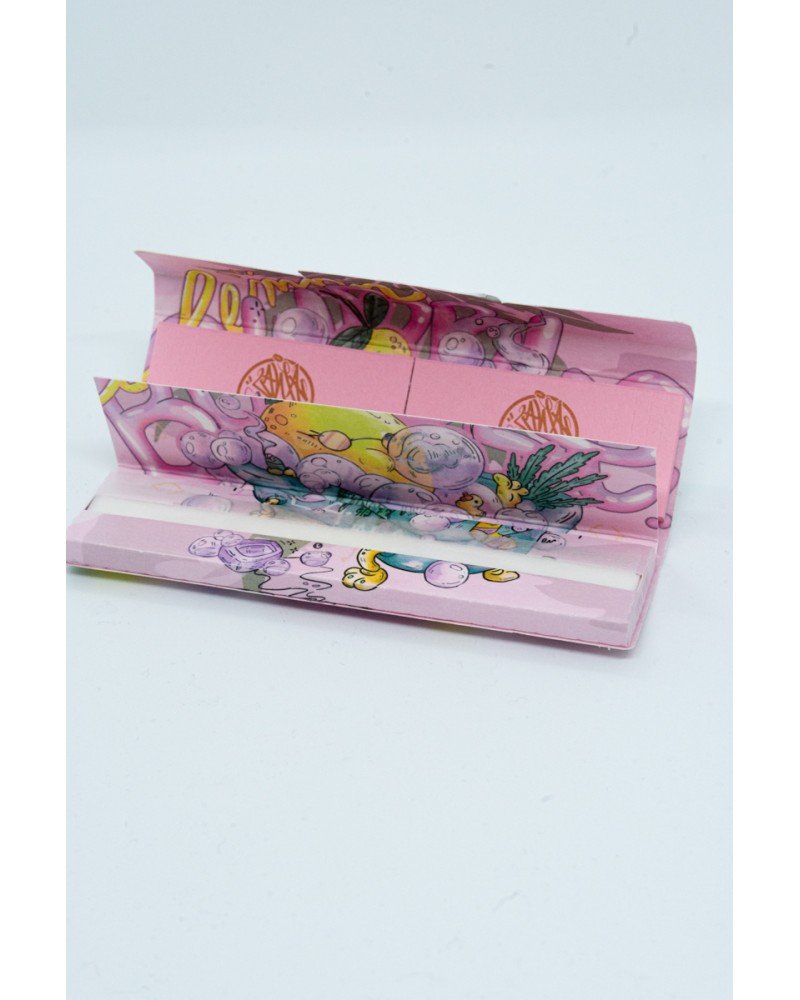 Zakręć się przy naszych bletkach inspirowanych odmianą Bubble. W opakowaniu znajdziesz 32 wolnopalące się bibułki i różowe filtry. A na opakowaniu spotkasz upaloną cytrynę w wannie, która puszcza bańki z ciężkim dymem. Nasze bletki nie tylko mają wyraziste opakowanie, ale również są wygodne w korzystaniu.