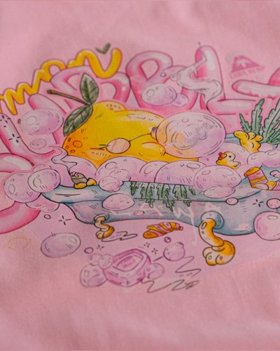 Dziewczyny? to różowy t-shirt idealny dla fanek Lemon Bubble. Na grafice kąpiąca się w wannie cytryna, która bawi się w towarzystwie gumowej kaczki i oczywiście cannabisu. Dodatkowo po bokach znajdziecie dwa nadruki związane z uprawą marihuany.