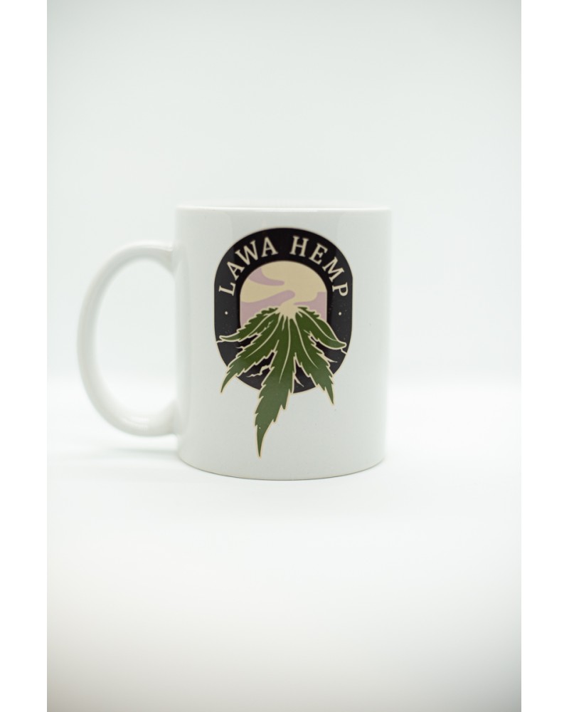 Biały kubek ceramiczny Lawa Hemp sprawdzi się i w domu, i w pracy, i tylko dla Ciebie, i dla Twoich znajomych. Dymiący liść marihuany na 100% wyróżni się na stole czy biurku.