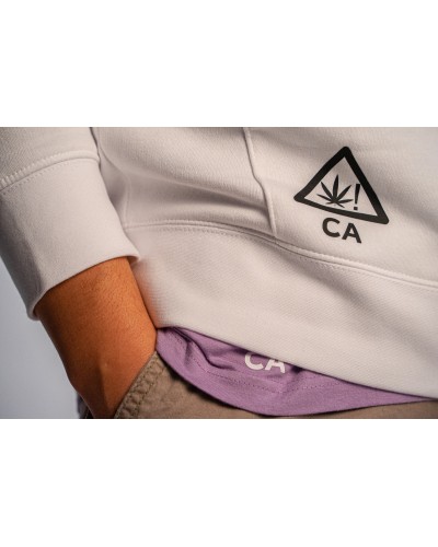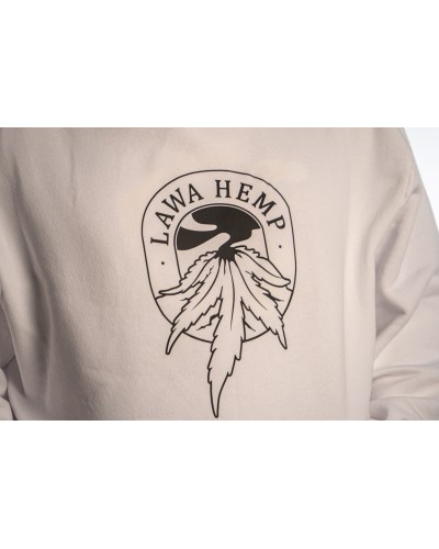 Białe szaleństwo w zielonym stylu? czyli bluza z kapturem w kolorze zimy oraz czarnym nadrukiem z dymiącym liściem marihuany i napisem Lawa Hemp. Obok dwóch bocznych kieszeni (kieszeń kangurkowa) dodaliśmy dwa dodatkowe nadruki. Wyglądem nawiązują one do hodowli marihuany.