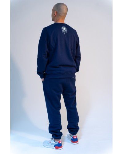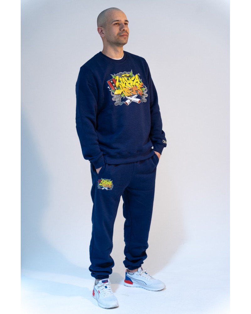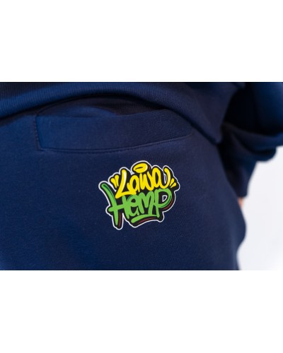 Granatowy komplet dresów spod znaku Lawa Hemp, który wykonaliśmy z najwyższej jakości materiału. Spodnie i bluza bez kaptura wyróżnią Cię kreatywnym nadrukiem inspirowanym cannabisem.