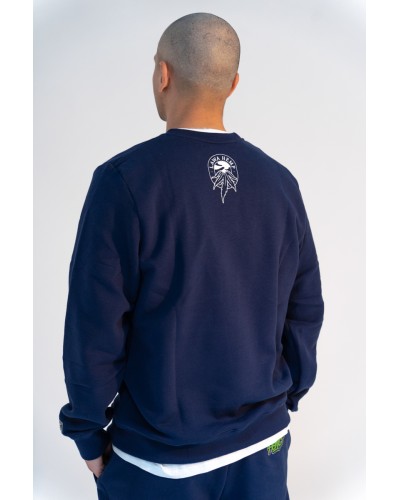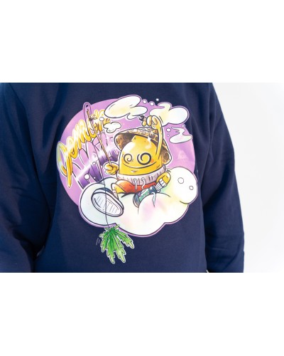 Granatowa bluza od fanów cannabisu dla fanów cannabisu. A na niej ujarana cytryna siedząca na chmurce i łowiąca marihuanę w towarzystwie skręta. Po prostu piękne, wyraziste i wyjątkowe? jak cannabis.