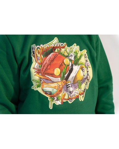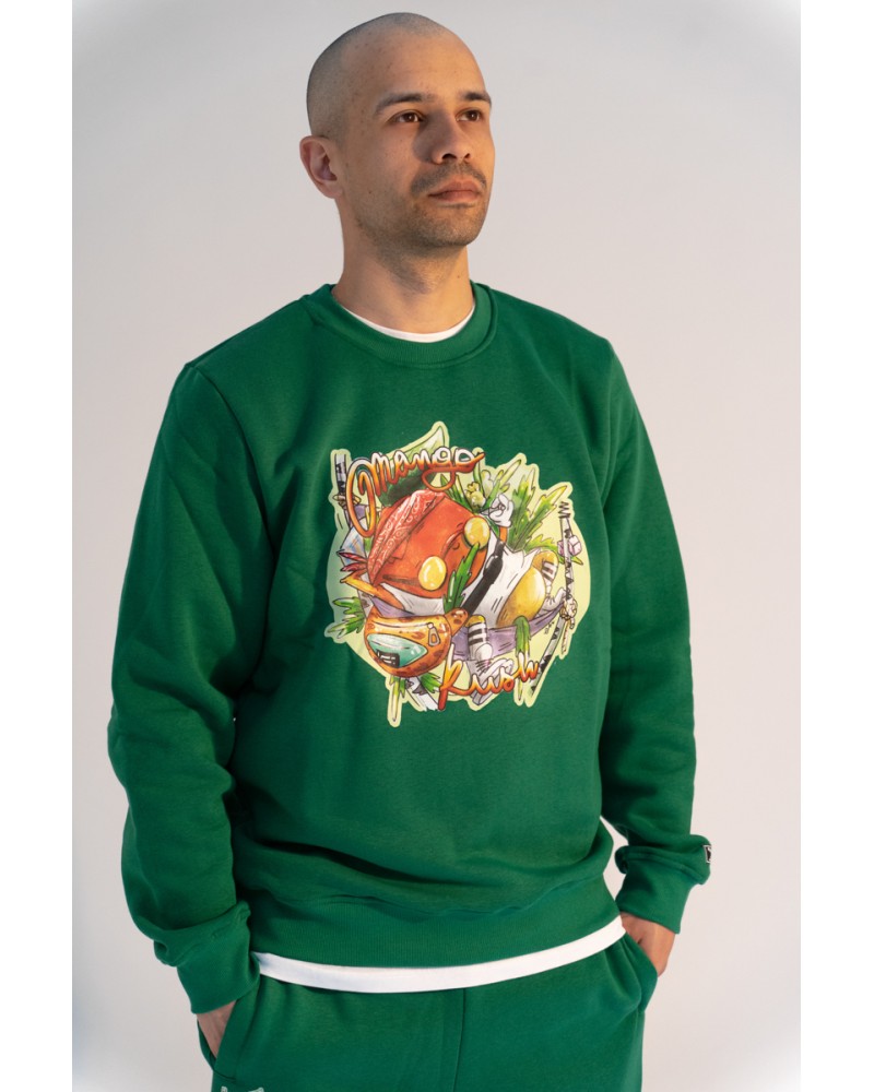 Zielona bluza od Lawa Hemp. A na niej szczęśliwe i zrelaksowane mango leży sobie na hamaku z blantem w dłoni. Palić, nie umierać. To idealna bluza dla fanów odmiany Mango Kush i wszystkich innych zajaranych cannabisem.