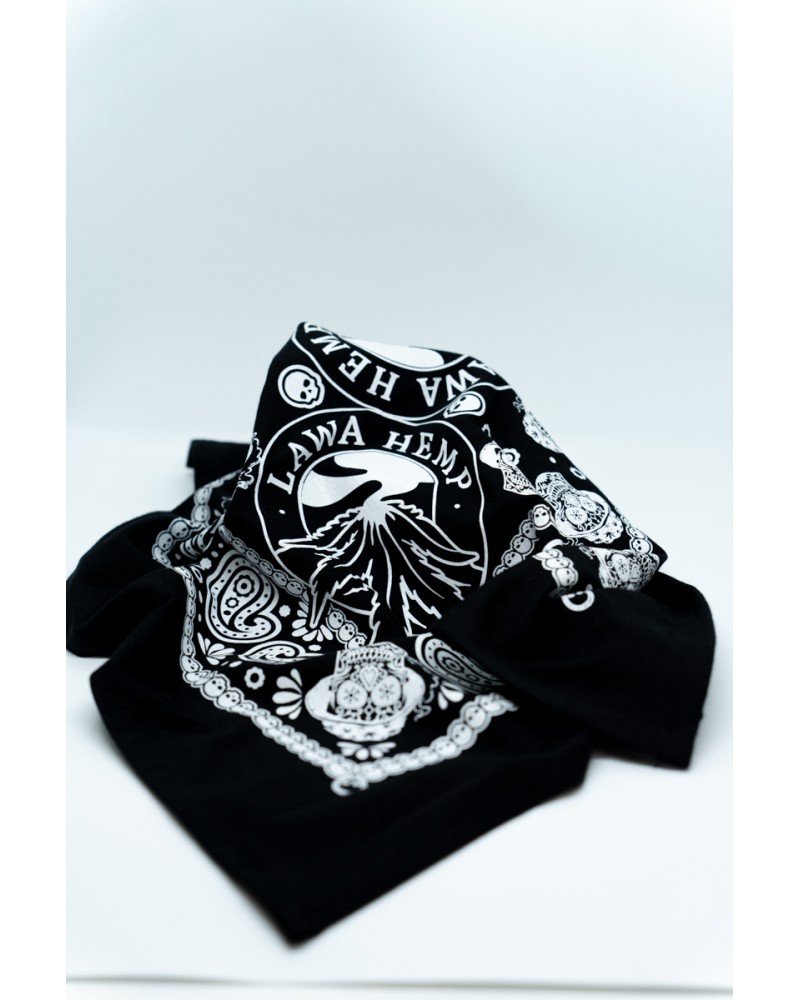Klasyka w cannabisowym wydaniu. Mnóstwo czaszek, a do tego czaszki palące skręty, dymiące liście marihuany i kilka stylowych dodatków. Czarna bandana prezentuje się, że głowa mała.